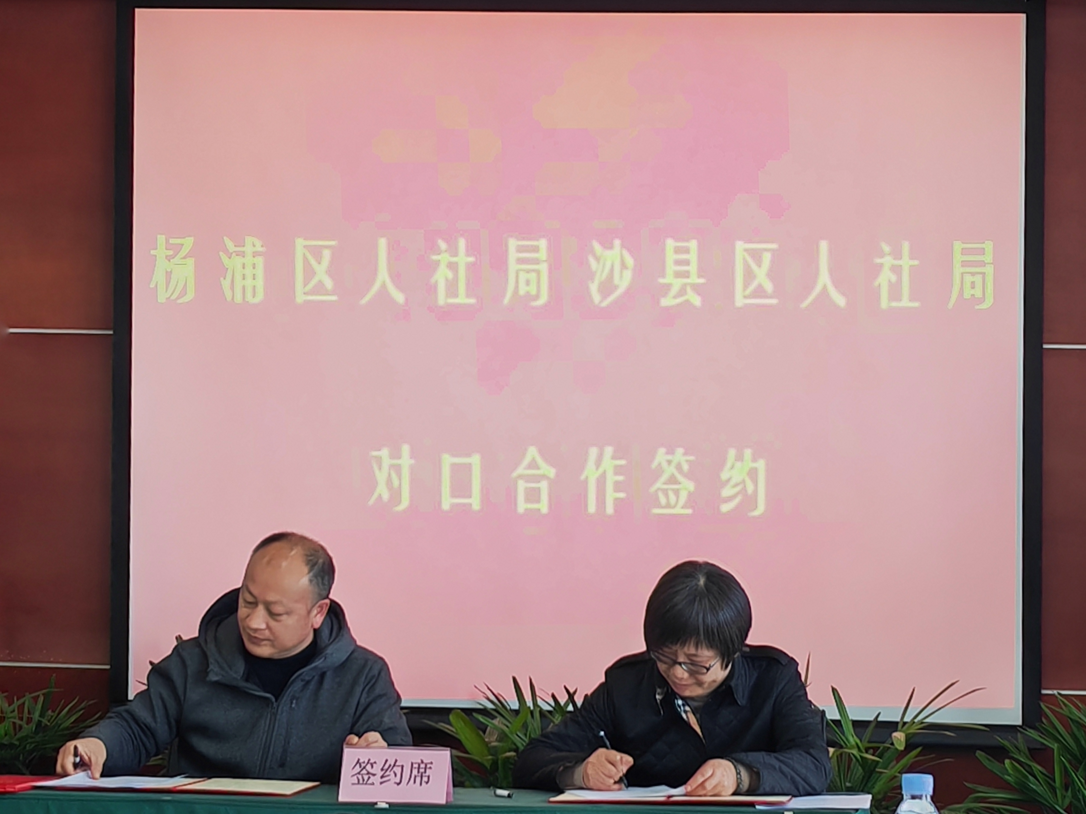 3月3日上午,三明市沙县区人社局与上海市杨浦区人社局签订对口合作协议,签约仪式在上海市杨浦区举行,沙县区人社局局长曾文礼与杨浦区人社局局长朱萍代表两局签订了协议。