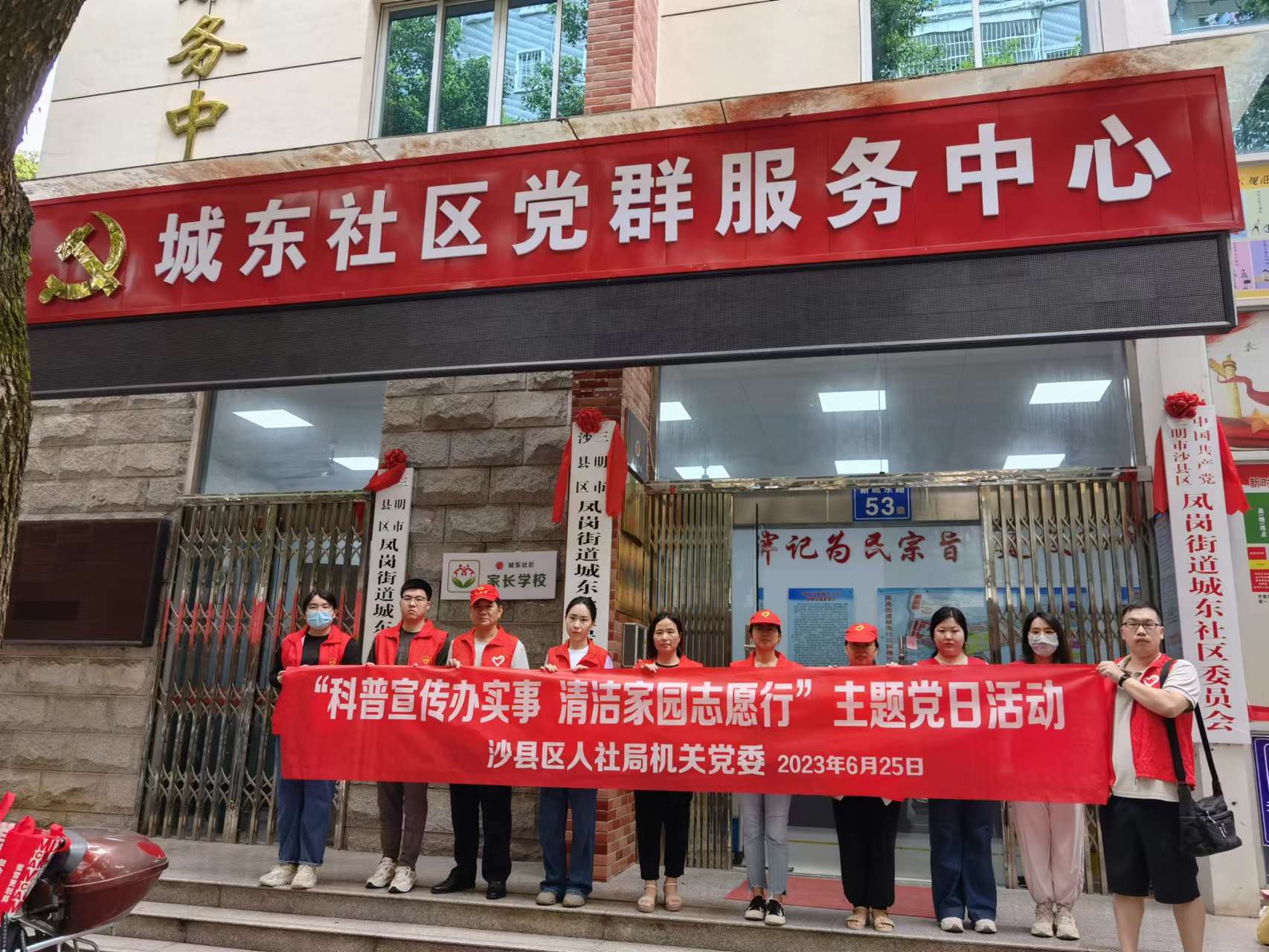 为深入学习贯彻习近平新时代中国特色社会主义思想和党的二十大精神,进一步弘扬党的优良传统,沙县区人社局机关党委以“全民禁毒宣传月”及“安全生产月”宣传为契机,于6月25日上午在城东社区开展“科普宣传办实事·清洁家园志愿行”七一主题党日活动。