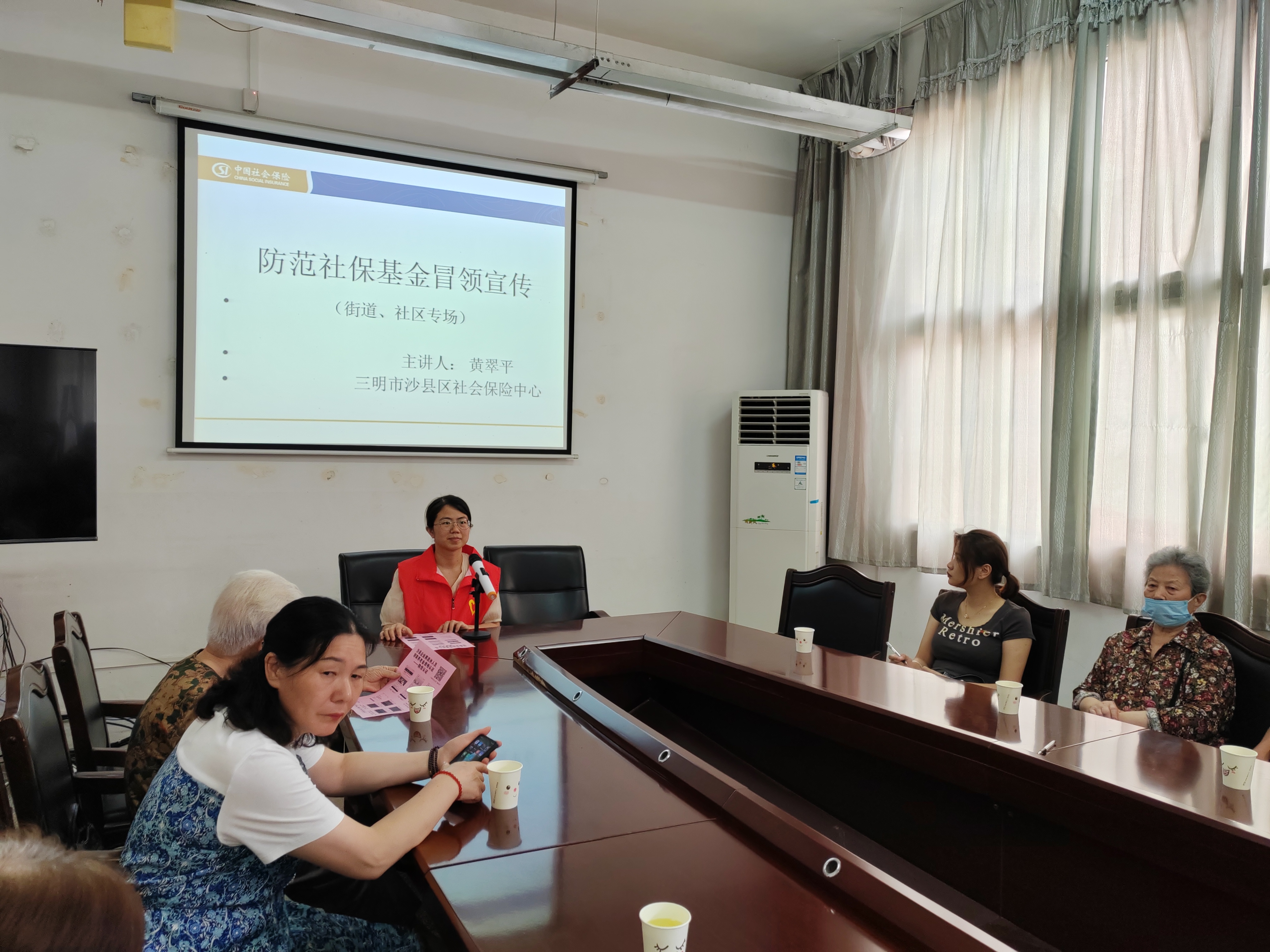 为切实维护社会保险基金安全,进一步规范基本养老金发放和领取工作,沙县区人社局发挥党建引领之力,安排“社保便民先锋队”走进东门社区开展防范社保基金冒领宣传活动。
