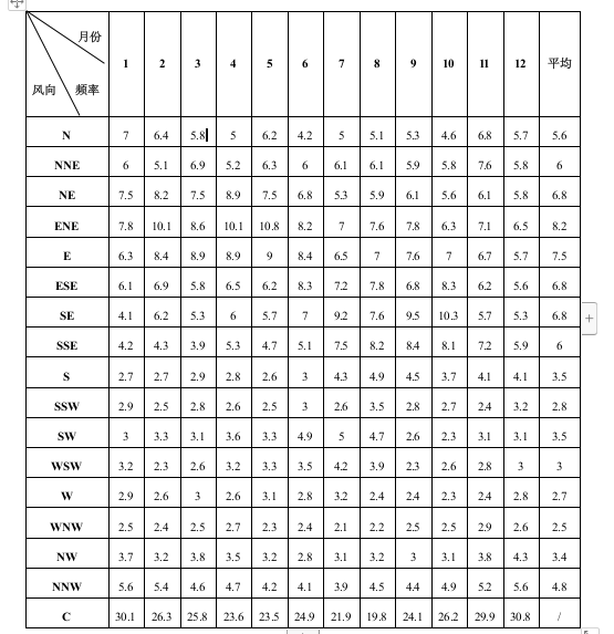表3 沙县区城区累年(2000~2019)各月各风向频率