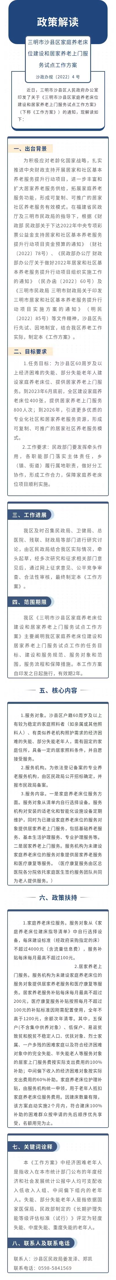 图解:《三明市沙县区家庭养老床位建设和居家养老上门服务试点工作方案》政策解读