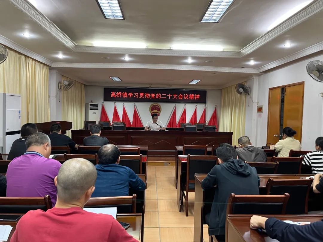 10月24日晚,高桥镇召开干部大会,传达学习党的二十大精神和省委、市委、区委常委会(扩大)会议精神,并研究部署贯彻落实工作。