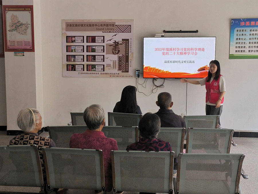 流动课堂“全域学”。依托宣传栏、微信群等载体,及时推送党的二十大报告及相关解读、时政评论等内容,引导党员干部进行个人自学。依托新时代文明实践所(站)、党群服务中心、文化服务中心等阵地,由“干部+乡贤+党员”组成的宣讲团深入群众,开展党的二十大理论宣讲活动,确保学习宣传全覆盖。