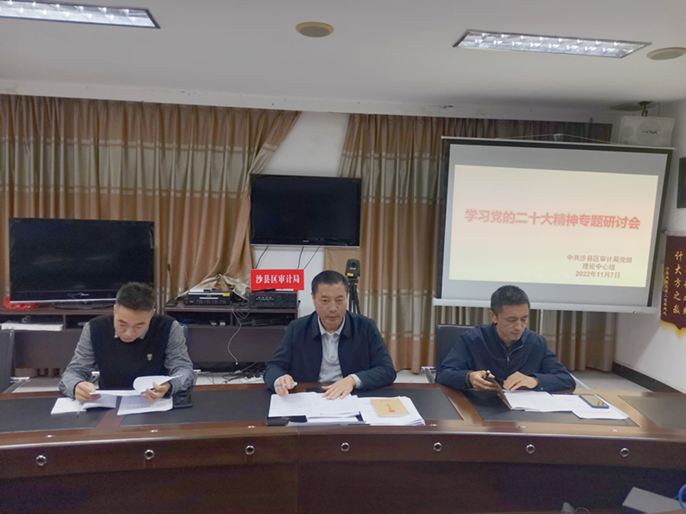 11月7日下午,沙县区审计局党组理论学习中心组(扩大)召开学习党的二十大精神专题研讨会。党组书记陈宜金主持会议并讲话,并部署学习宣传贯彻党的二十大精神。党组理论学习中心组成员、全局干部参加研讨会。