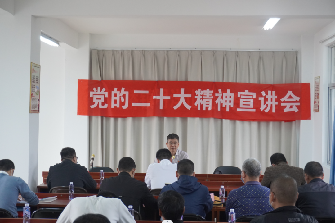 11月25日上午,区检察院党组书记、检察长董新到高桥镇泉水峡村宣讲党的二十大精神。挂包村成员、村党员代表及群众参加宣讲会。