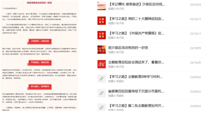 此外,还结合小微权力监督微信群、“虬城e乡e家”等线上程序,在各党支部微信群推送学习资料5期10余条,发布《致全镇流动党员的一封信》,浏览量超2万次。