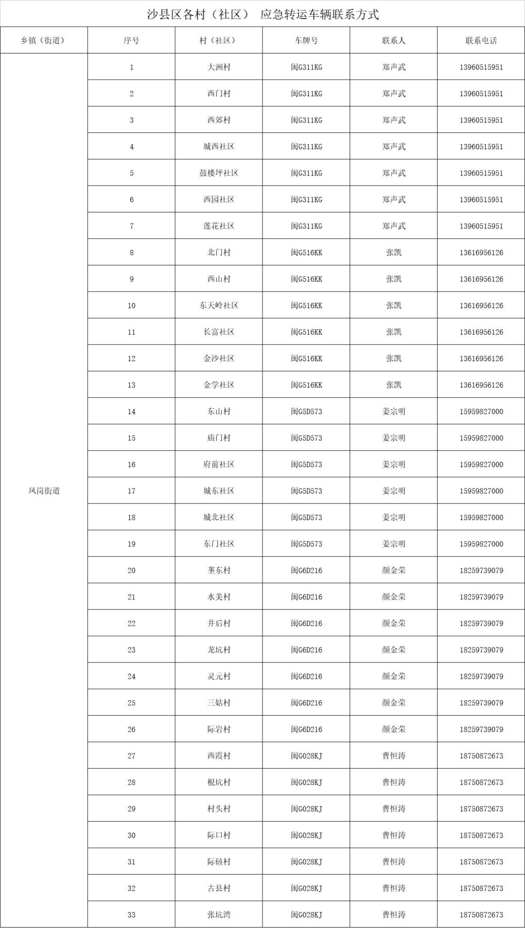 沙县区关于各乡(镇、街道)应急转运服务有关事项的通告([2023]第2号)