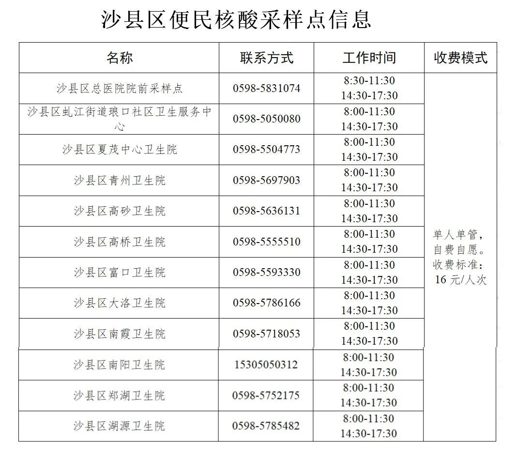 沙县区核酸采样点信息
