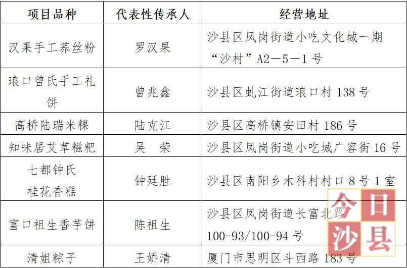 沙县小吃制作技艺区级(第五批)代表性传承人公示