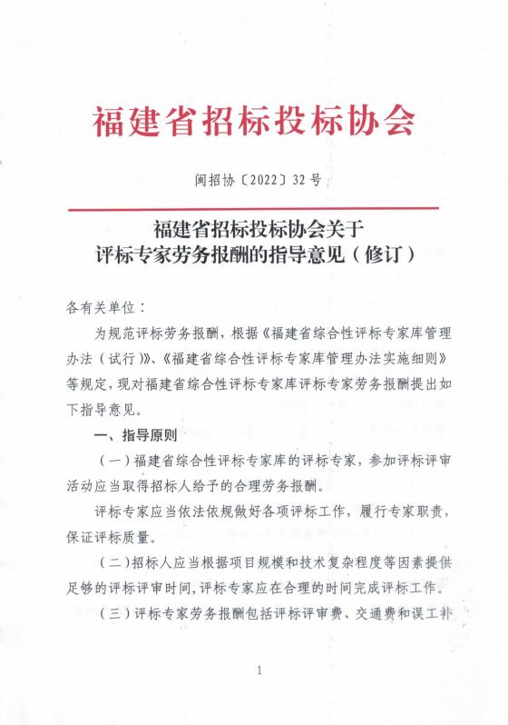 福建省招标投标协会关于评标专家劳务报酬的指导意见(修订)