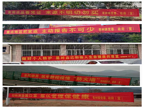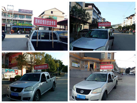 利用会议传达上级防疫精神,压实防控责任;运用LED宣传屏、公告栏、宣传条幅、宣传车、“村村响”将防疫指南传遍大街小巷;镇村干部、志愿者走村入户“喊话式”宣传,对闲杂人员喜欢打牌、下棋闲聊的密集点进行疏散;利用微信、QQ等方式及时将上级有关疫情防控精神和要求告知村民。截至日前,全镇共发放和张贴宣传单4000余份,悬挂标语200余条,出动防疫宣传车50余车次。