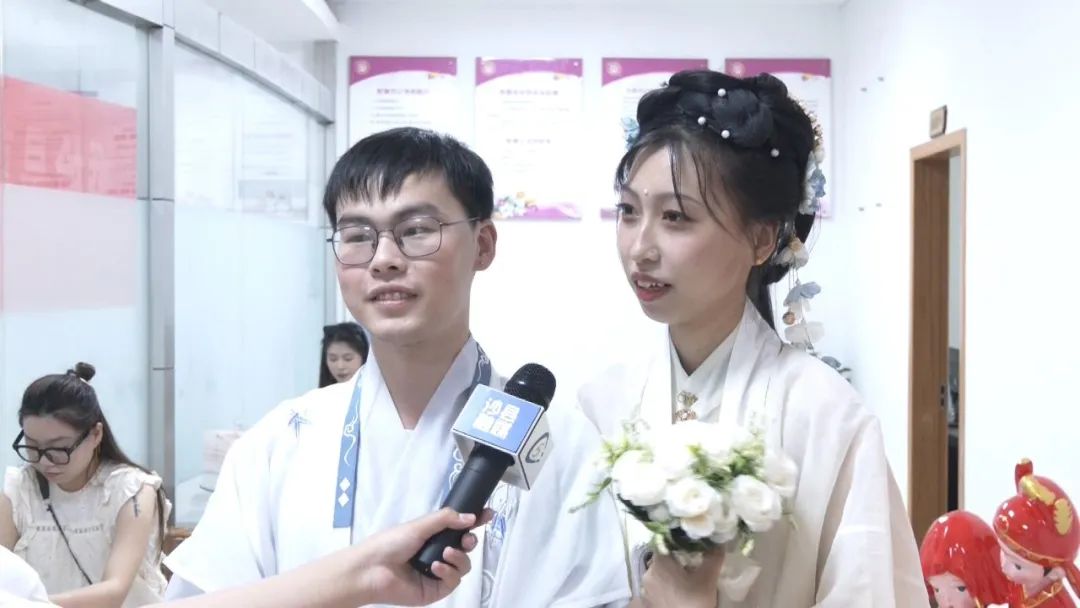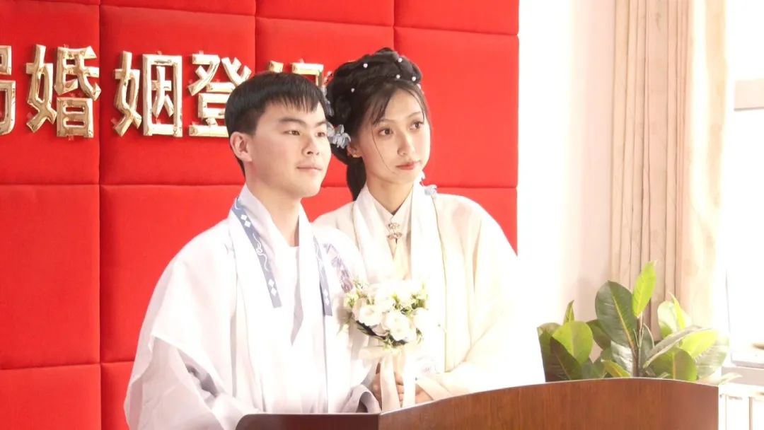 不少新人仪式感满满,有的身着汉服,有的头戴白纱进行结婚登记,隔着屏幕都能感到浓浓的爱意。