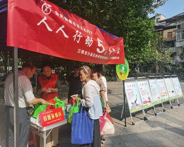 9月12日,沙县区慢病办、沙县区医防融合办、沙县区卫健局、沙县区疾控中心、沙县区凤岗街道城区卫生服务中心联合在凤岗街道城东社区开展全民健康生活方式宣传月活动。