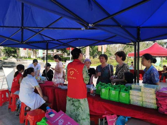 活动现场通过悬挂横幅、摆放展板、发放健康小礼包、宣传资料等形式,广泛宣传健康与生活的关系,倡导群众主动学习健康知识,掌握健康技能,积极践行文明健康的生活方式,落实“做自己健康第一责任人”理念。