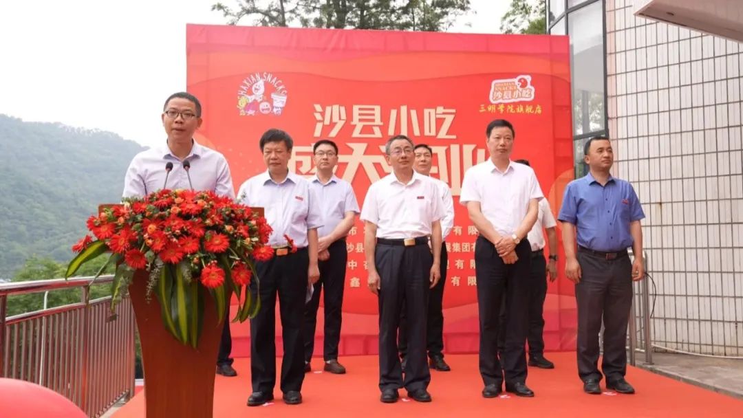 副区长薛建宁在仪式上致辞。他向参加旗舰店开业活动的各位领导、嘉宾以及长期以来关心和支持沙县小吃产业发展的各位同仁、各位朋友表示热烈的欢迎和衷心的感谢。