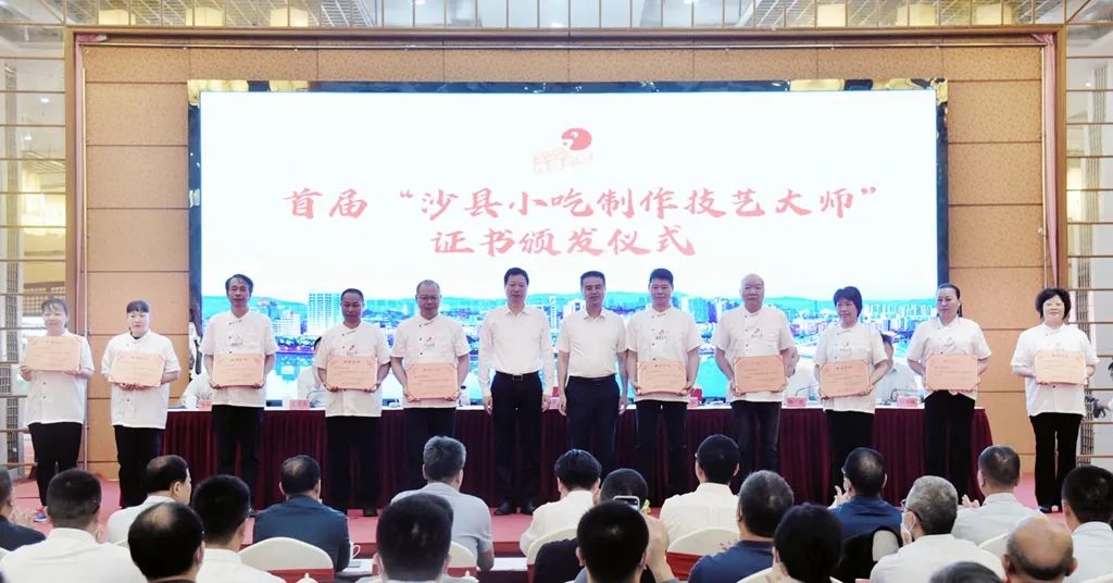 区主要领导为20位首届“沙县小吃制作技艺大师”授牌。