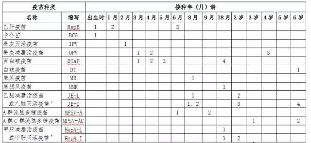 国家免疫规划疫苗儿童免疫程序表(2016年版)