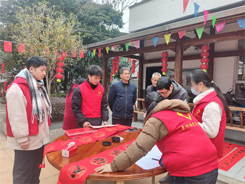 在热烈氛围里,写春联、送福字的活动也在火热进行着,现场墨香四溢,热闹非凡。三明市书画院的老师们挥毫泼墨,笔走龙蛇,将真诚的祝福凝于笔端,用一幅幅春联表达着对新年的美好愿望,用一个个“福”字传递节日的喜庆与吉祥。活动吸引了众多村民参与,大家都沉浸在欢乐的氛围中。
