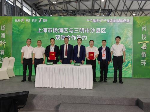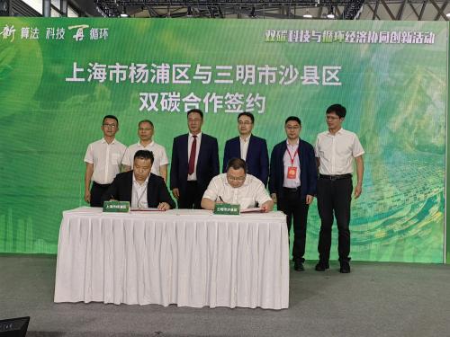 6月5日,在第三届上海国际碳中和技术、产品与成果博览会上,沙县区和上海杨浦区政府在“杨浦新算法,科技再循环”主旨论坛上完成“双碳”合作签约。