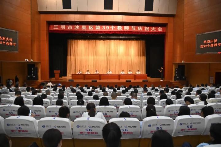 9月6日上午,沙县区第39个教师节庆祝大会召开,表彰全区教育战线上涌现出的先进集体和先进个人,进一步发挥榜样的力量,共同开创沙县区教育工作新局面。区委书记吴健成、区长陈晓翔、区人大常委会主任吴江潮、区政协主席黄志平等四套班子领导参加会议。