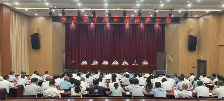 9月25日上午,沙县区生态环境保护大会召开,会议深入学习贯彻习近平生态文明思想,牢记“青山绿水是无价之宝”的重要嘱托,全面落实第二批主题教育工作会议和省、市生态环境保护大会的部署要求,坚持生态优先、绿色发展理念,以新思想引领生态文明建设,奋力开创沙县生态文明建设新局面。区委书记吴健成,区人大常委会主任吴江潮,区政协主席黄志平,区领导徐文、孔鹏飞、胡开钱、王仁伟等参加会议。