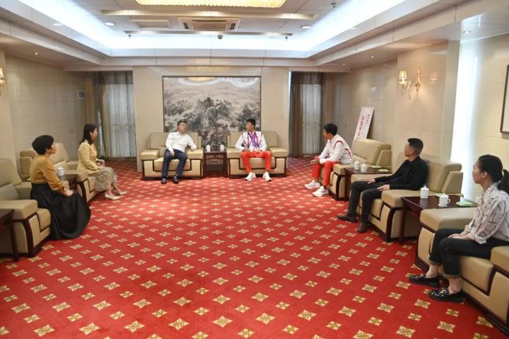 10月8日上午,区长陈晓翔会见了载誉归来的杭州第19届亚运会龙舟项目冠军张志成,代表区委区政府和全区人民送上鲜花,欢迎他回到家乡。副区长张美娥参加会见活动。