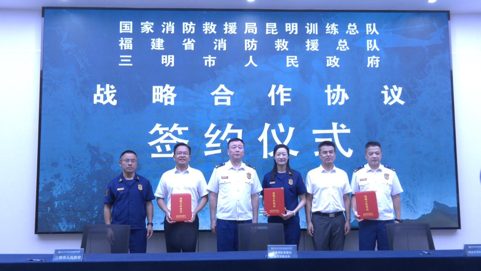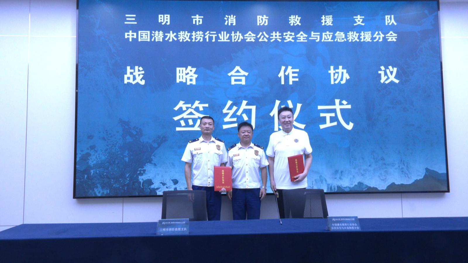 开幕式结束后,国家消防救援局昆明训练总队、福建省消防救援总队和三明市人民政府共同签署了战略合作协议;三明市消防救援支队和中国潜水救捞行业协会公共安全与应急救援分会共同签署了战略合作协议。根据协议内容,双方将在课题研究、骨干交流、人才培养、联勤联动、信息共享、科研攻关等方面开展交流合作,共同推动应急救援事业高质量发展。