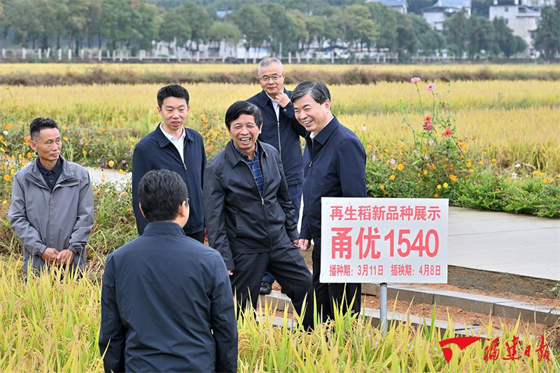 粮食安全,国之大者。浦城县素有“闽北粮仓”的美誉,眼下正是再生稻第二茬稻的收获期。周祖翼一行来到石陂镇申明村再生稻生产示范片,田间谷穗饱满低垂、收割机整装待发。周祖翼在田埂上与农业科技专家、种粮大户交流,走进再生稻科技小院,听取再生稻科技推广情况。周祖翼说,广阔天地,大有作为。年轻科技人员要加强思想淬炼、政治历练、实践锻炼、专业训练,在田间地头开展研究,推动科技成果转化落地,促进粮食生产增产增效,带动和服务更多种粮农民,真正把论文写在田野大地上。在浦城县仙芝科技公司,周祖翼深入灵芝栽培车间,察看灵芝出枝、孢子粉采集等流程,询问企业科研创新和灵芝种植、加工、销售等情况,鼓励企业做强主业、做大品牌,加强科技研发,引进培养更多科技人才,积极助农富农。