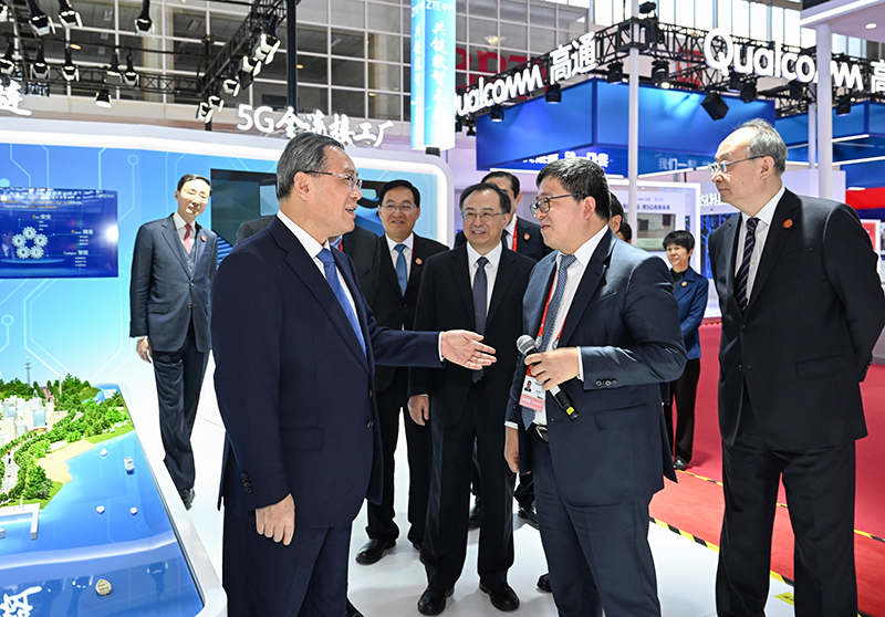 11月28日,国务院总理李强在北京出席首届中国国际供应链促进博览会开幕式暨全球供应链创新发展论坛,并发表主旨演讲。这是开幕式前,李强到链博会展馆巡馆并与有关企业负责人互动交流。新华社记者 饶爱民 摄