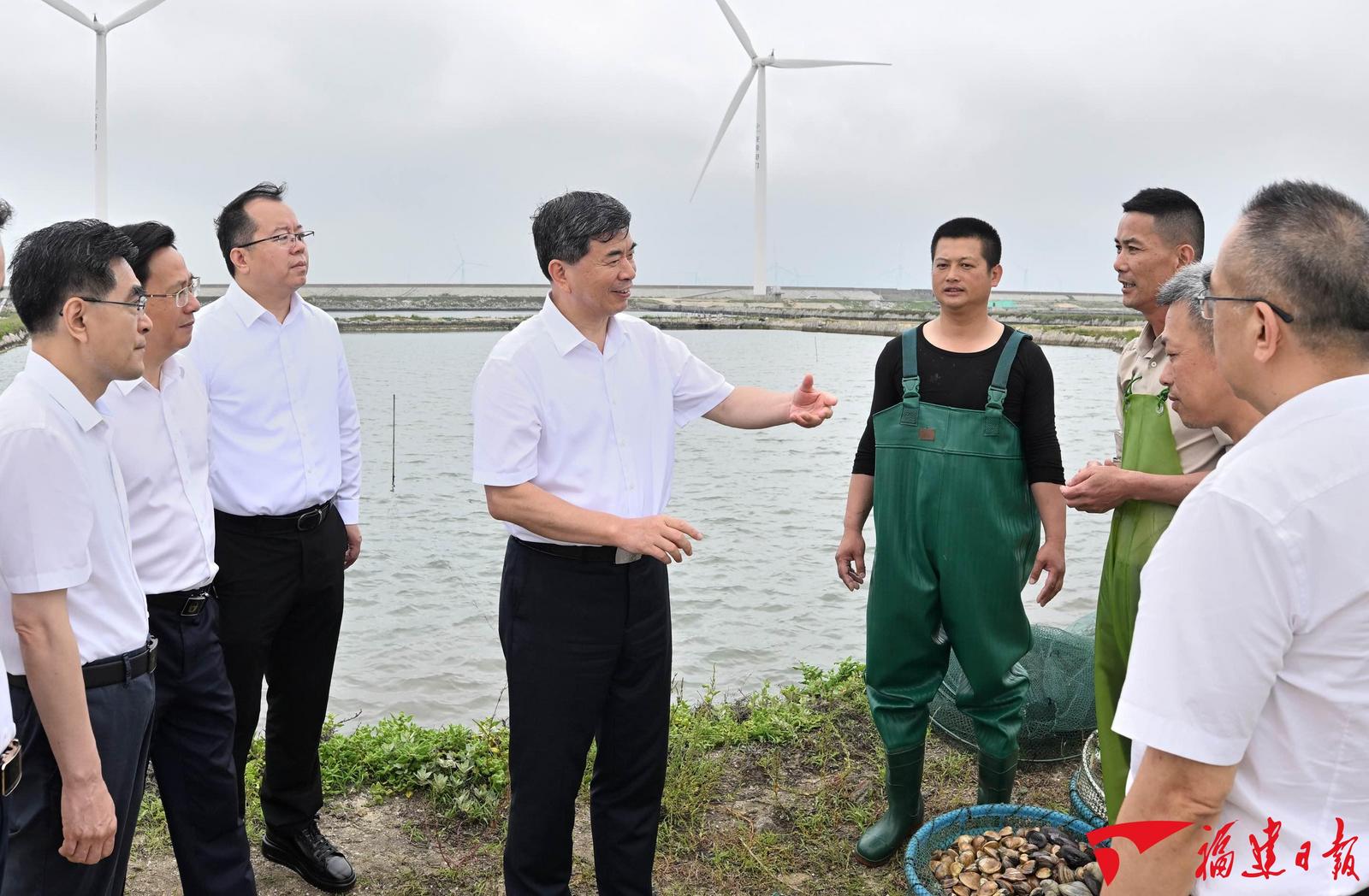 位于秀屿区的南日岛是国家级“和美海岛”,其海域是国家级海洋牧场示范区,优质水产品种繁多。周祖翼一行乘船登岛,来到港南村围垦区生态养殖基地,察看国鲍荟产学研中心,详细询问南日鲍的养殖、加工、销售等情况,了解推进乡村振兴、加强基层治理、促进共同富裕等工作。周祖翼希望当地牢记嘱托好好干,坚持科技兴鲍,把南日鲍这个品牌持续做大做强,坚持良种培育、有机养殖,开发更多符合市场需求的精深加工产品,推动一二三产业融合发展,带领更多村民共同致富。登上九重山,周祖翼一行远眺碧蓝海域,认真听取当地打造海上田园综合体验区以及近期防汛防台风等工作情况,强调要牢固树立大农业观、大食物观,加大对海洋生物多样性的保护力度,大力发展渔旅融合产业,建设更高水平的“蓝色粮仓”,做大做强海洋经济。要加强风情雨情汛情监测预报,紧盯海上作业平台、海堤、渔排等重点,排查整治隐患,提高防灾减灾救灾能力。在石城北码头,周祖翼实地察看渔港船舶停靠数量,通过动态监管系统了解伏季休渔船舶管理和基层网格化管理情况,要求各地扛起属地责任,守好相关海域、船只、人员,预防化解基层纠纷,有力维护海上安全秩序和沿海地区安定稳定。