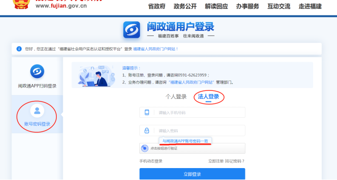 3、注册→法人注册→填写信息(手机号注册建议使用法人绑定闽政通的手机号,人员资料信息填写法人的信息)→法人用户登录(输入刚才的手机号和设定的密码)