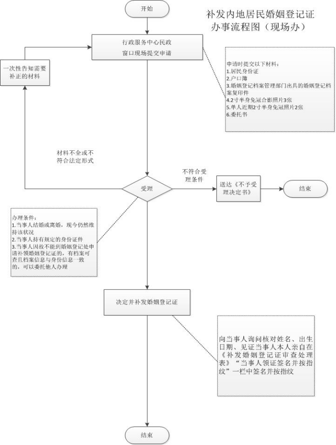 (2)补发结婚证提交3张2寸双方近期半身免冠合影照片(原件收,3份)/补发离婚证提交2张2寸近期单人半身免冠照片(原件收,2份)
