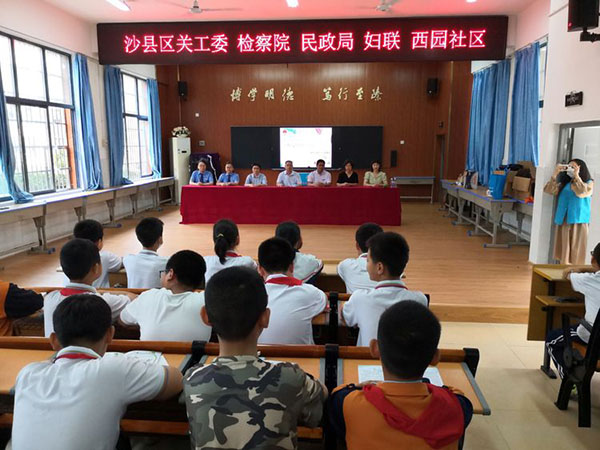 讲座结束以后,区关工委、民政局、妇联、西园社区等部门还给学生发放了有关预防校园欺凌宣传材料。