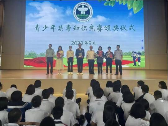 2023年9月18日,三明市公安局禁毒支队政委邹金春、区教育局副局长王宛芳、区公安分局禁毒大队大队长张族雄到沙县区金沙高级中学为参赛教师、学生颁奖。
