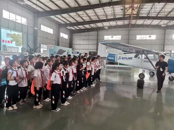同学们还来到三明市思凯兰航空职业技术学校,在教员的讲解下,大家初步了解了现代飞机制造的先进技术和科技力量,学习掌握了有关通用航空知识,实操体验各类飞行器。