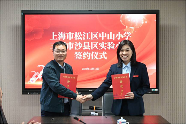 为贯彻落实《国务院关于新时代支持革命老区振兴发展的意见》,进一步加强沪明两地教育交流合作,推动三明市教育高质量发展,2024年11月10日下午,沙县区实验小学举行沪明教育校际合作签约仪式。沙县区教育局副局长王宛芳、上海市松江区中山小学校长李军、沙县区实验小学校长周丽婷等相关领导出席签约仪式。