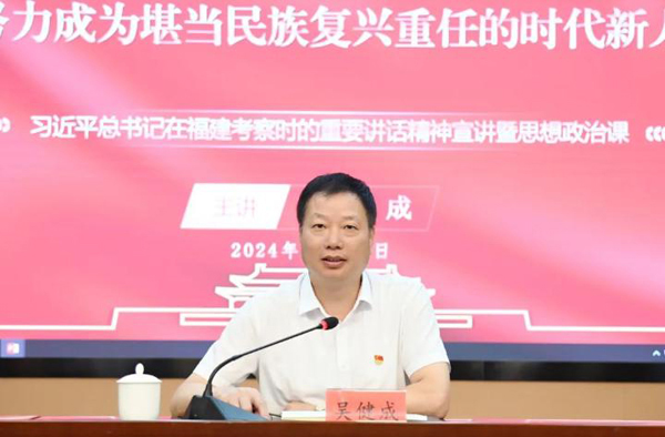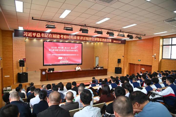 11月14日,区委书记吴健成赴沙县区第一中学宣讲习近平总书记在福建考察时的重要讲话精神,并以“立大志 明大德 成大才 担大任,努力成为堪当民族复兴重任的时代新人”为主题,为师生上了一堂思政课。区委常委、宣传部部长周颖主持会议,区直有关单位负责同志及全区各中小学、幼儿园350余名师生代表到场聆听。