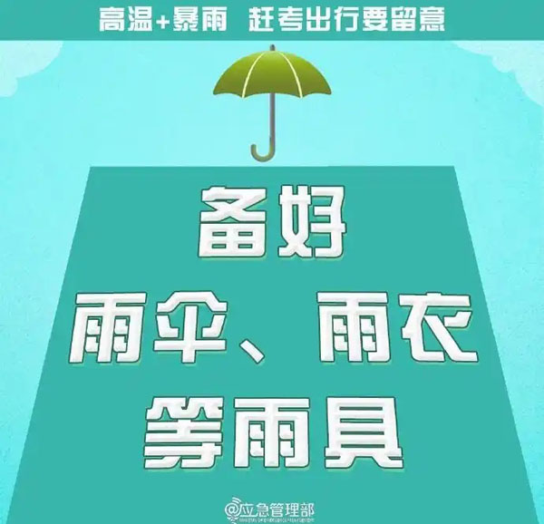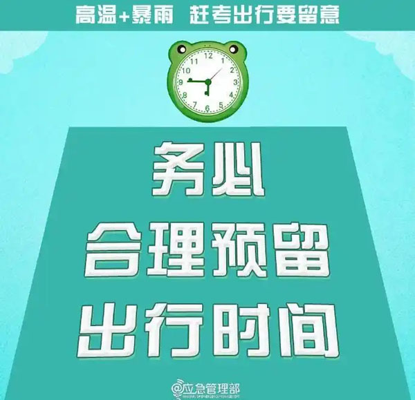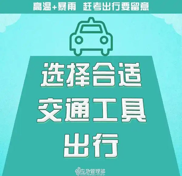 @高考生 防范高温暴雨 赶考出行这些事项要留意