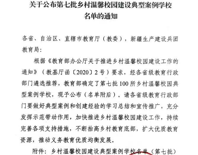 近日教育部公布了第七批乡村温馨校园建设典型案例学校名单