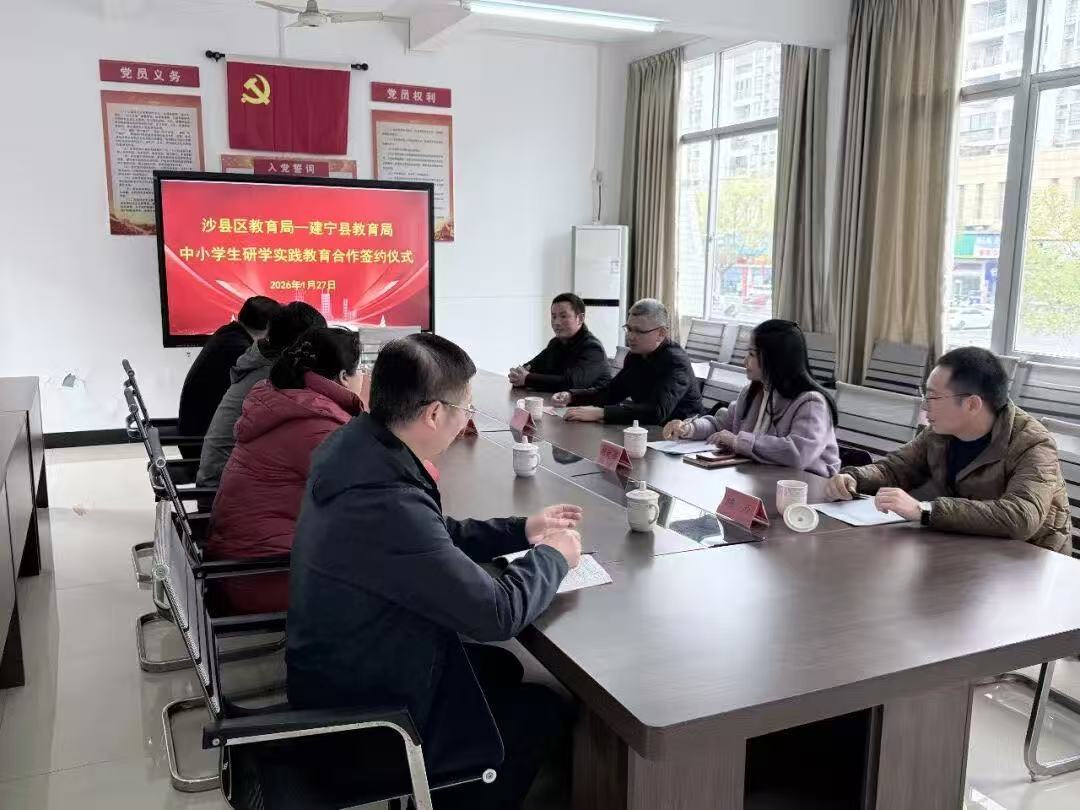 为落实立德树人根本任务,加强研学实践教育区域合作,1月27日下午,沙县区教育局与建宁县教育局举行中小学生研学实践教育合作签约仪式。