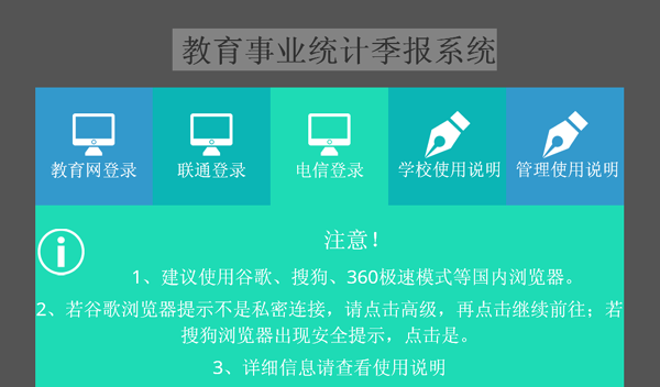 现将2020年第三季度(7、8、9月份)的“教育事业统计季报”上网填报的入口通知给大家,请各校抓紧时间,建议利用晚上或周末时间(正常上班期间,因太多人登录使用,因网速原因有些卡顿,需耐心等待,其他时间相对网速更顺畅些)抓紧完成统计季报工作。