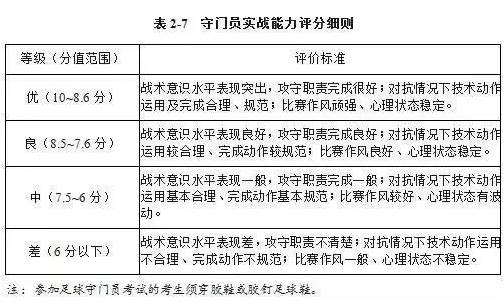 1.考试方法:考生守门,扑接10个来自罚球区线外射中球门的有效射门球(含地滚球、半高球、高球以及需要倒地扑救的球)。