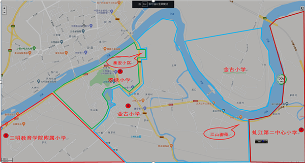 (5)翠绿小学。林业新村路口至老机砖场,延伸至水南林场以东;沙溪河以南;老虎山安置房(不含)、凤凰湖东路、凤凰湖北路至凤凰路国安路口以西,嘉禾路、泰和路至泰安小区(含)以西,国安路口至嘉禾路口(金沙加油站)以北片区。