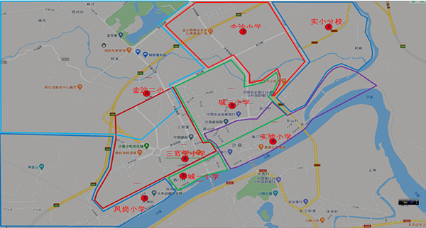 (8)金沙第二小学。高速公路收费站以东,西郊新村以南,金沙路开辉首府路口往北至金明路宏霖汽车美容店路口,沿金明路往东至长泰路以西,金沙路以北片区。含西郊村、汇华小区、龙湖天城、长富家园、金沙城市广场、中央美域、宜和佳苑、开辉首府等住宅小区。