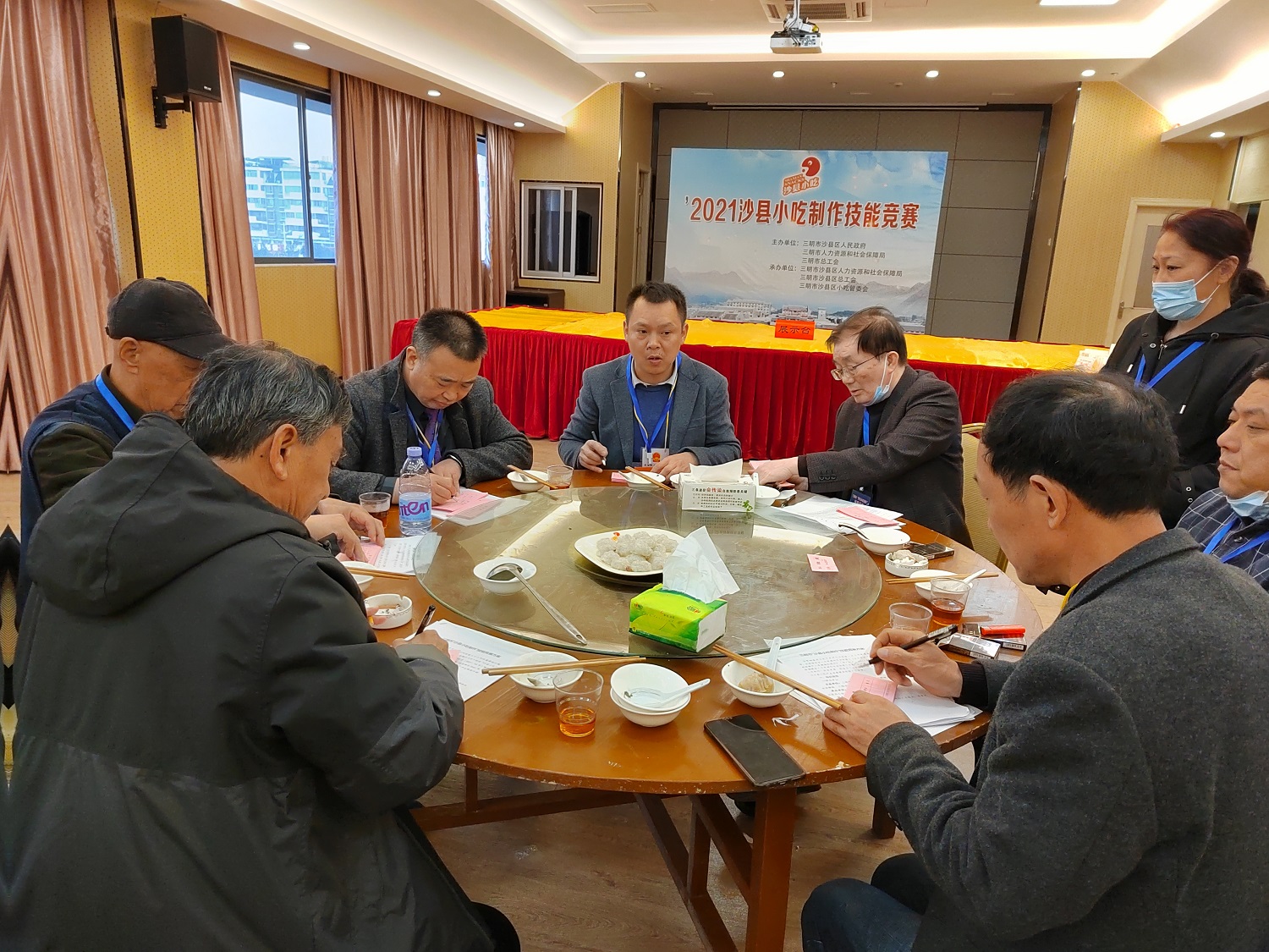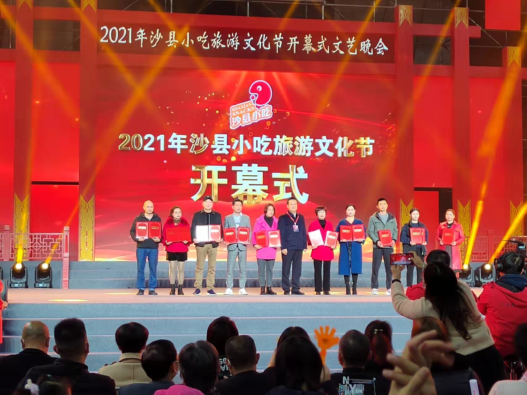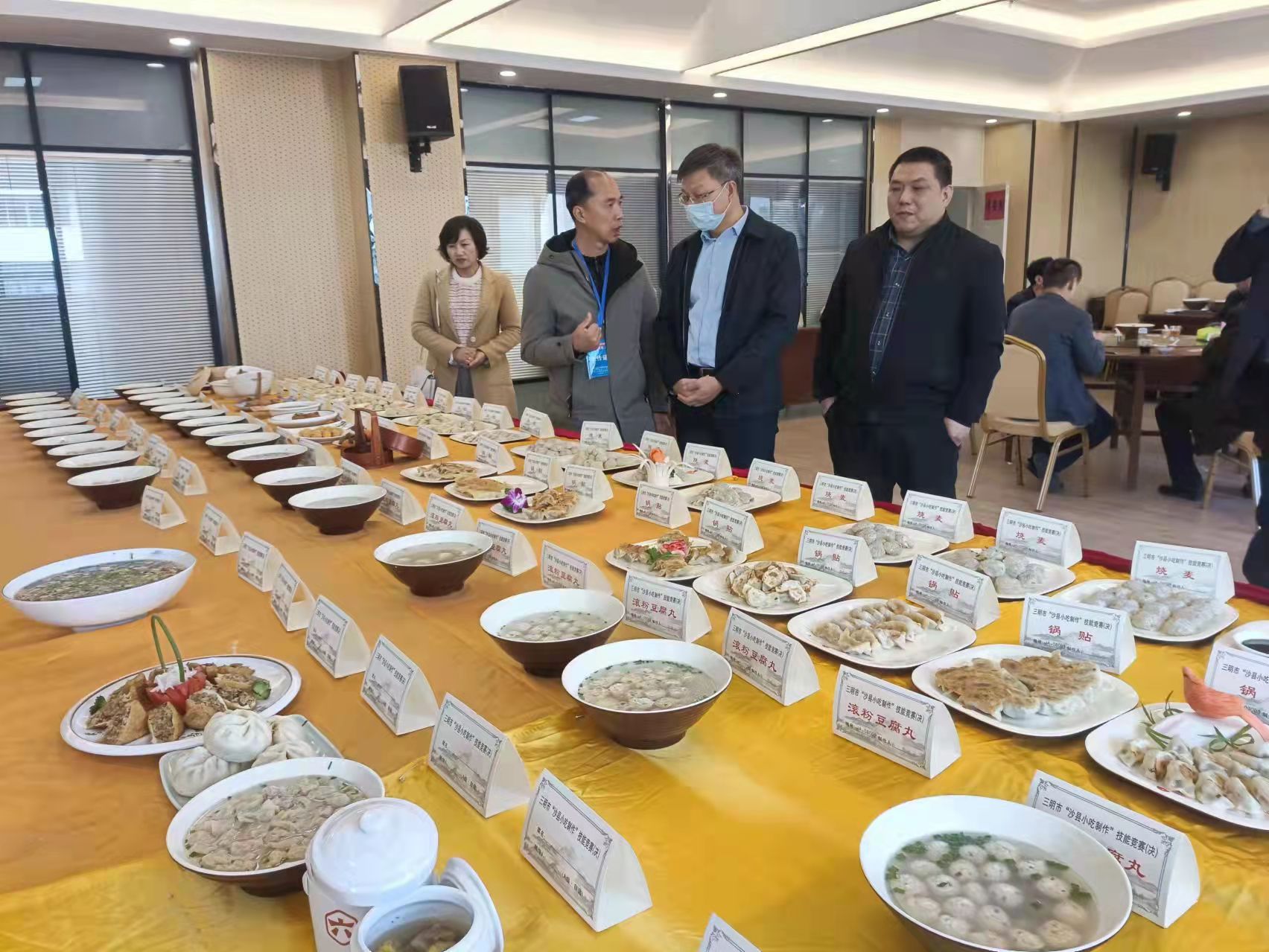 12月7日,在2021年小吃旅游文化节开幕式暨文艺晚会上举行颁奖活动,福建省人社厅副厅长洪长春、二级调研员陈育红,三明市人社局局长吴成城,副局长陈永连、职建科科长饶志伟出席颁奖晚会。洪长春同志上台为3名一等奖选手授予“福建省沙县小吃技艺名师”称号、为7名优秀奖选手授予“三明市沙县小吃技艺名师”称号。三明市总工会副会长张素梅与沙县区委常委、副区长胡开钱为获得一等奖和优秀奖的选手颁发荣誉证书。