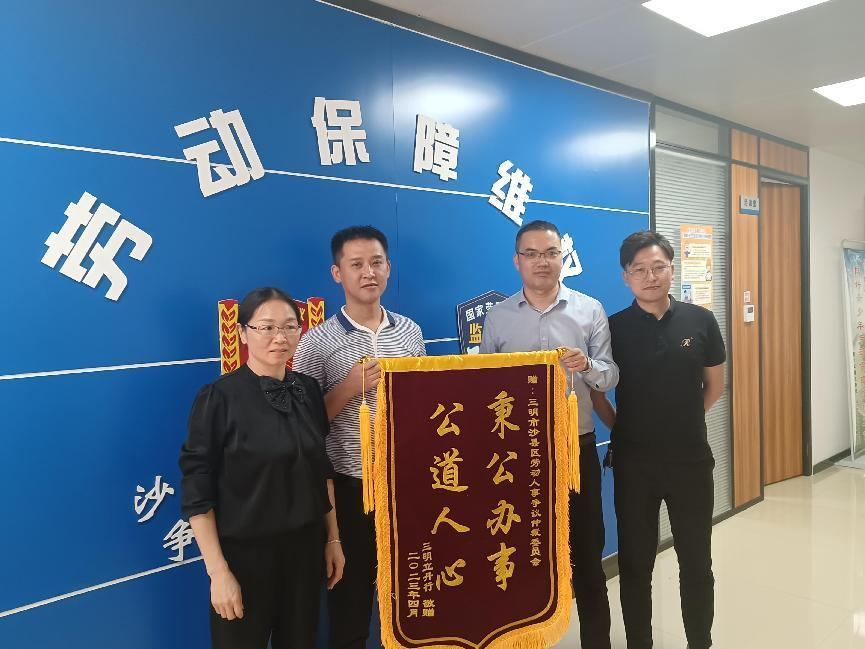 近日,沙县区一企业向沙县区劳动人事争议仲裁院送来了一面“秉公办事 公道人心”的锦旗,对仲裁院及承办案件的工作人员秉公办理案件表示衷心的感谢。