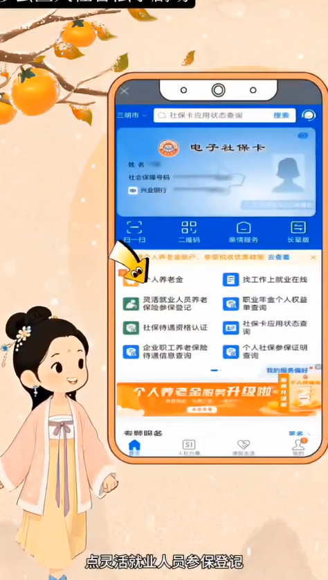 灵活就业参保方式:1.群众可通过“闽政通”线上办理—打开“闽政通”APP—搜索“电子社保卡”—点击“灵活就业人员养老保险参保登记”