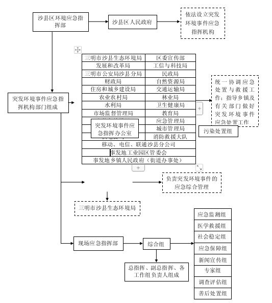 突发环境事件应对工作坚持统一领导、分级负责,属地为主、协调联动,快速反应、科学处置,资源共享、保障有力的原则。突发环境事件发生后,三明市沙县区人民政府和有关部门立即自动按照职责分工和相关预案开展应急处置工作。