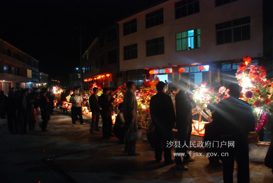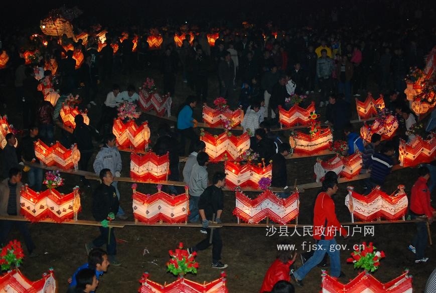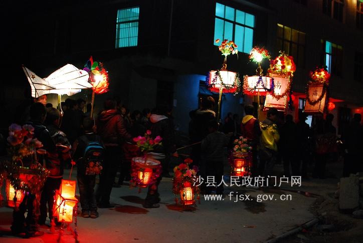 湖源乡迎灯活动,做灯首的是各族(或村)上年第一个喜获男丁者,下面跟随的是上一年各族(或本村)所有新结婚对象,因为他们娶亲时女方娘家都有送一对彩灯作纪念,表示人丁兴旺。每年大年初一在拜祖后确定为迎灯首的、参加迎灯的主人(上年结婚对象),从大年初二开始都要请自己的叔伯兄弟、亲戚朋友帮忙编制花灯,直至迎灯首择吉日那天晚上迎完花灯为止。迎灯队伍由灯首、各组灯组成。其中灯首由铜钟鼓(领队2人),灯首灯、龙伞各一对,二胡、箫各一对,锣鼓钹一副,花篮花灯若干(含花篮、鲤鱼灯、白鹤灯、五星灯、走马灯,飞机灯等)等组成;各组灯由铜钟鼓(领队)、花篮花灯、锣鼓钹一副、彩灯一对组成。到了迎灯那天傍晚,各迎灯队伍从各自家出发,敲锣打鼓至各族祖祠集中,等到天暗点亮花篮、花灯,从各自祖祠出发环绕湖源一圈。一路上,每经过一户人家门前,各家都会点燃烟花爆竹迎接,象征家家户户迎灯、添丁、发财、吉祥如意之意。迎完之后,迎灯首的到家后,请一些知名人士唱曲儿,而后请帮忙迎灯的人喝酒吃饭。