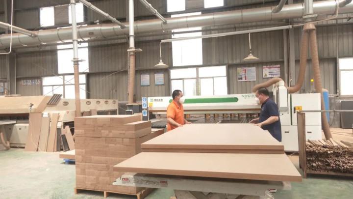 在企业生产车间内,机器轰鸣,工人们熟练操作数控机床、喷涂机等智能设备,经过开料、钻孔、喷漆等工序,一件件简约现代的小件板式家居快速成型,全力满足源源不断的订单需求。